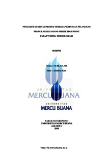 Nurlailah, Nurlailah (2010) PENGARUH KUALITAS PRODUK TERHADAP KEPUASAN PELANGGAN PRODUK FREESTANDING MEREK HIGH POINT PADA PT. MITRA LESTARI. S1 thesis, Universitas Mercu Buana.