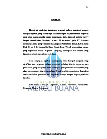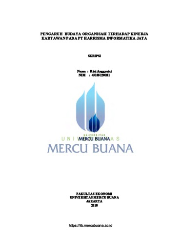 Anggraini, Rini (2010) PENGARUH BUDAYA ORGANISASI TERHADAP KINERJA KARYAWAN PADA PT. HARRISMA INFORMATIKA JAYA. S1 thesis, Universitas Mercu Buana.