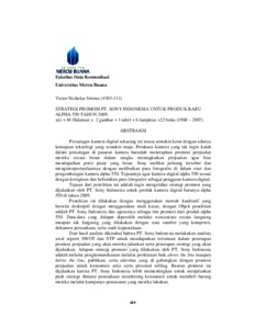 S, VICTOR NICHOLAS (2010) STRATEGI PROMOSI SONY INDONESIA UNTUK PRODUK KAMERA DIGITAL ALPHA 550 PADA TAHUN 2009. S1 thesis, Universitas Mercu Buana Jakarta.