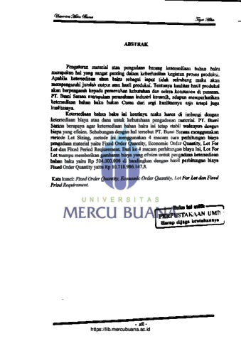 | Uncontrolled Keywords: | METODE LOT SIZING |