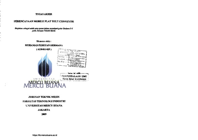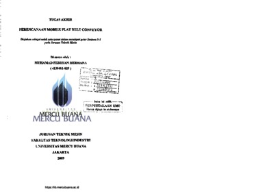 HERMANA, MUHAMMAD FEBRYAN (2009) PERENCANAAN MOBILE FLAT BELT CONVEYOR. S1 thesis, Universitas Mercu Buana Jakarta.