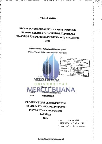 HADISWOYO, SETIAWAN (2009) PROSES OUTSOURCING DI PT SIEMENS INDONESIA CILEGON FACTORY PADA VENDOR PT PERKASA HEAVYNDO ENGINEERING (PHE-TEXMACO) TAHUN 2009-2010. S1 thesis, Universitas Mercu Buana Jakarta.