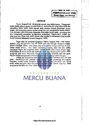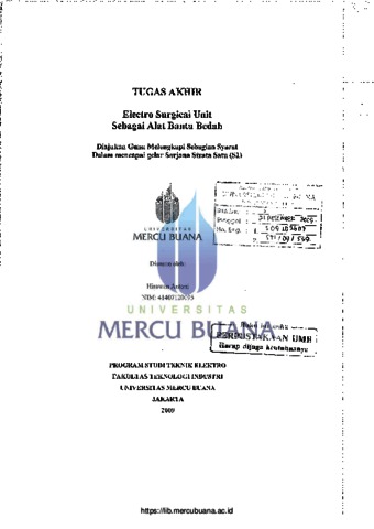 ANTONI, HIRAWAN (2009) ELECTRO SURGICAL UNIT SEBAGAI ALAT BANTU BEDAH. S1 thesis, Universitas Mercu Buana Jakarta.