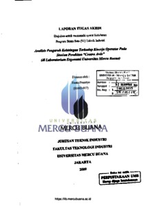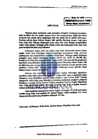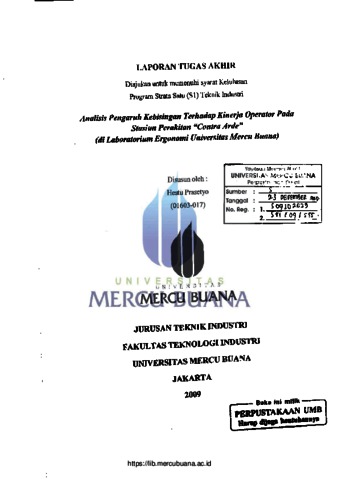 PRASETYO, HESTU (2009) ANALISIS PENGARUH KEBISINGAN TERHADAP KINERJA OPERATOR PADA STASIUN PERAKITAN "CONTRA ARDE" (DI LABORATORIUM ERGONOMI UMB). S1 thesis, Universitas Mercu Buana Jakarta.