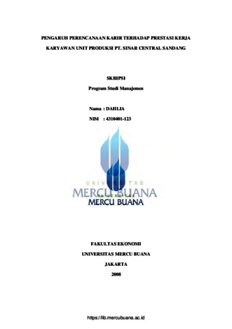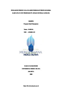 Dahlia, (2009) PENGARUH PERENCANAAN KARIER THD PRESTASI KERJA KARYAWAN UNIT PRODUKSI PT SINAR CENTRAL SANDANG. S1 thesis, Universitas Mercu Buana.