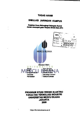 BINOBA, BONI (2009) SIMULASI JARINGAN KAMPUS. S1 thesis, Universitas Mercu Buana Jakarta.