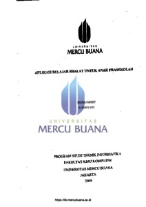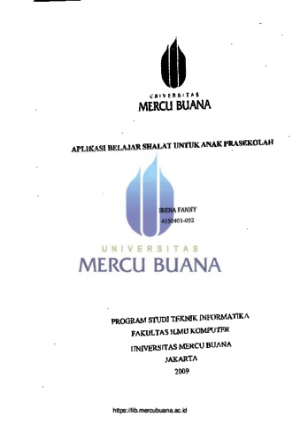 FANNY, IRENA (2009) APLIKASI BELAJAR SHALAT UNTUK ANAK PRASEKOLAH. S1 thesis, Universitas Mercu Buana Jakarta.