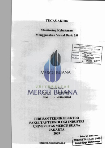 ARIFUDIN, ARIFUDIN (2009) MONITORING KEBAKARAN MENGGUNAKAN VISUAL BASIC 6.0. S1 thesis, Universitas Mercu Buana Jakarta.