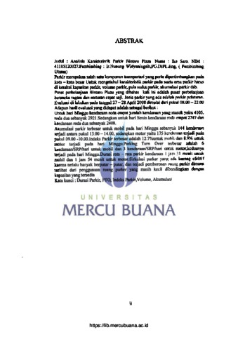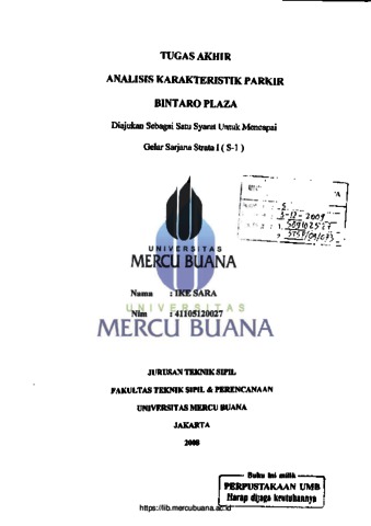SARA, IKE (2008) ANALISIS KARAKTERISTIK PARKIR BINTARO PLAZZA. S1 thesis, Universitas Mercu Buana Jakarta.