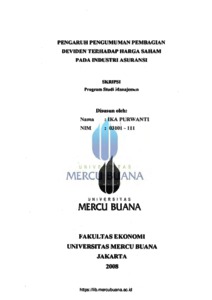 PURWANTI, IKA (2008) PENGARUH PENGUMUMAN PEMBAGIAN DEVIDEN THD HARGA SAHAM PADA INDUSTRI ASURANSI. S1 thesis, Universitas Mercu Buana.