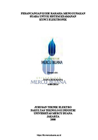 RUKMANA, NANA (2008) PERANCANGAN KODE RAHASIA MENGGUNAKAN SUARA UNTUK SISTEM KEAMANAN KUNCI ELEKTRONIK. S1 thesis, Universitas Mercu Buana Jakarta.