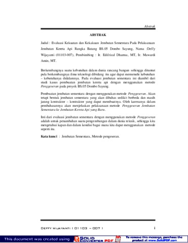 Wijayanti, Deffy (2007) EVALUASI KEKUATAN DAN KEKAKUAN JEMBATAN SEMENTARA PADA PELAKSANAAN JEMBATAN KERETA API RANGKA BATANG BS.05 DOMBO SAYUNG. S1 thesis, Universitas Mercu Buana.