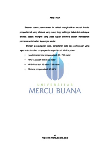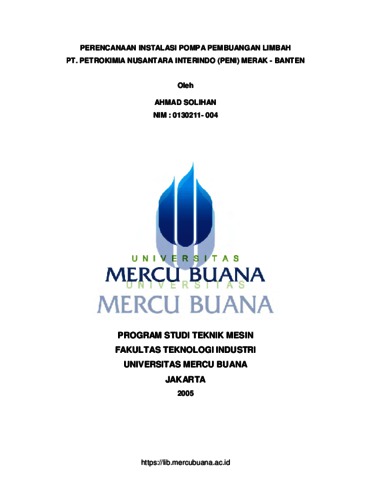 Solihan, Ahmad (2006) PERENCANAAN INSTALASI POMPA PEMBUANGAN LIMBAH PT.PETROKIMIA NUSANTARA INTERINDO (PENI) MERAK-BANTEN. S1 thesis, Universitas Mercu Buana.