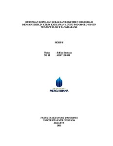 SEPTIANA, RIBKA (2011) HUBUNGAN KEPUASAN KERJA DAN KOMITMEN ORGANISASI DENGAN DISIPLIN KERJA KARYAWAN AGUNG PODOMORO GROUP PROJECT BLOK B TANAH ABANG. S1 thesis, Universitas Mercu Buana Jakarta.