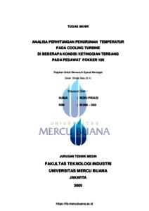 | Uncontrolled Keywords: | perhitungan penurunan temperatur, cooling turbine, pesawat fokker 100 |