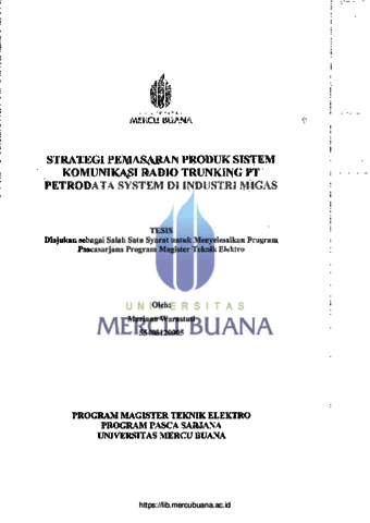 WARASTUTI, MARIANA (2012) STRATEGI PEMASARAN PRODUK SISTEM KOMUNIKASI RADIO TRUNKING PT. PETRODATA SYSTEM DI INDUSTRI MIGAS. S2 thesis, Universitas Mercu Buana Jakarta.