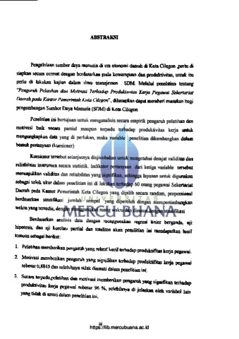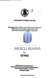 AMAYAH, UUM (2003) PENGARUH PELATIHAN DAN MOTIVASI TERHADAP PRODUKTIVITAS KERJA PEGAWAI PADA KANTOR PEMERINTAH KOTA CILEGON. S2 thesis, Universitas Mercu Buana Jakarta.