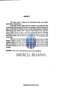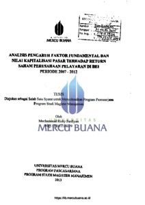 Fardiyan, Muchammad Ricky (2013) Analisis Pengaruh Faktor Fundamental dan Nilai Kapitalisasi Pasar Terhadap Return Saham Perusahaan Pelayanan Di BEI Periode 2007-2012. S2 thesis, Universitas Mercu Buana.