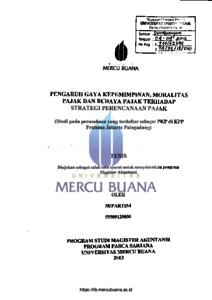 Supartini, (2013) Pengaruh Gaya Kepemimpinan Moralitas Pajak Dan Budaya Pajak Terhadap Strategi Perencanaan Pajak. S2 thesis, Universitas Mercu Buana.