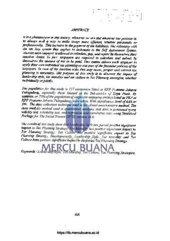 | Uncontrolled Keywords: | Leadership Style, Tax Morality, Tax Culture, Tax Planning Strategis Gaya Kepemimpinan, Moralitas Paj |