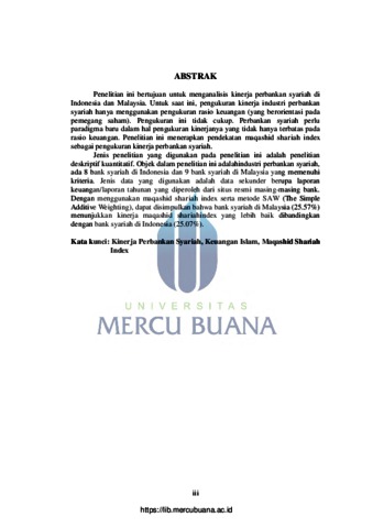 HADIJAH, HADIJAH (2017) ANALISIS KINERJA PERBANKAN SYARIAH BERDASARKAN KONSEP AL-MAQASHID SYARIAH DINDONESIA DAN MALAYSIA. S1 thesis, Universitas Mercu Buana Jakarta.