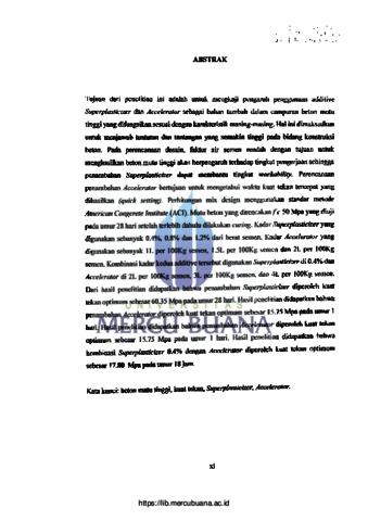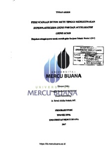 PAMBUDI, SINGGIH (2017) PERENCANAAN BETON MUTU TINGGI MENGGUNAKAN SUPERPLASTICIZER LIGNO P100 DAN ACCELERATOR LIGNO AC610. S1 thesis, Universitas Mercu Buana Jakarta.