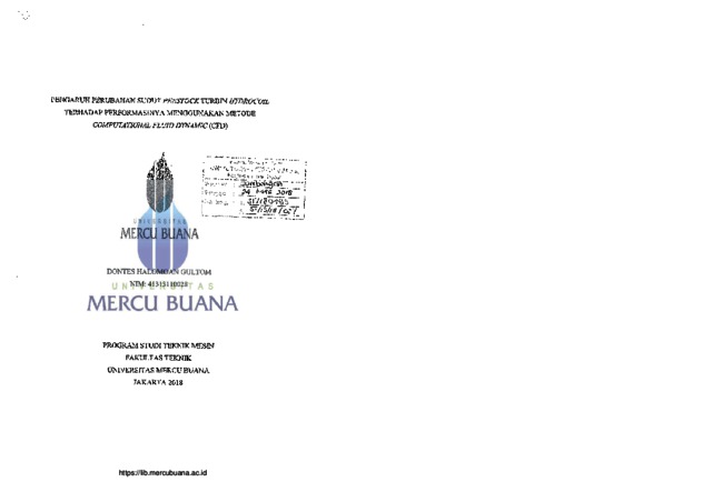 GULTOM, DONTES HALOMOAN (2018) PENGARUH PERUBAHAN SUDUT PENSTOCK TURBIN HYDROCOIL TERHADAP PERFORMASINYA MENGGUNAKAN METODE COMPUTATIONAL FLUID DYNAMIC (CFD). S1 thesis, Universitas Mercu Buana Jakarta.