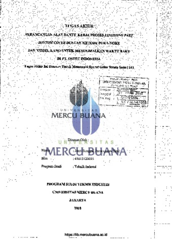 SIRAIT, JENRI SUNGGUL PARINGOTAN (2018) PERANCANGAN ALAT BANTU KERJA PROSES FINISHING PART BOTTOM COVER DENGAN METODE POKA-YOKE DAN MODEL KANO UNTUK MEMINIMALKAN WAKTU BAKU DI PT. OSTEC INDONESIA. S1 thesis, Universitas Mercu Buana Jakarta.