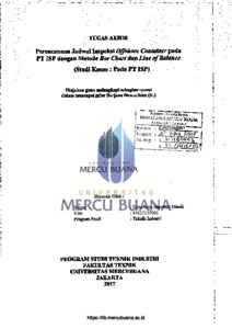 MANIK, DOHARMIN MANUTURI (2017) PERENCANAAN JADWAL INSPEKSI OFFSHORE CONTAINER PADA PT ISP DENGAN METODE BAR CHART AND LINE OF BALANCE (Studi Kasus : Pada PT ISP). S1 thesis, Universitas Mercu Buana Jakarta.