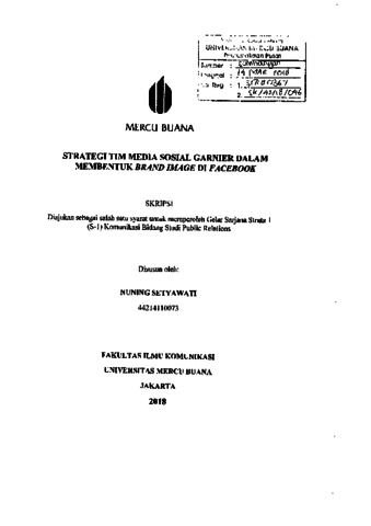SETYAWATI, NUNING (2018) STRATEGI TIM MEDIA SOSIAL GARNIER DALAM MEMBENTUK BRAND IMAGE DI FACEBOOK. S1 thesis, Universitas Mercu Buana Jakarta.