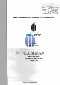 USMANTO, USMANTO (2018) PERANCANGAN MESIN PERONTOK PADI MENGGUNAKAN MESIN DIESEL. S1 thesis, Universitas Mercu Buana Jakarta.