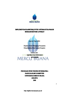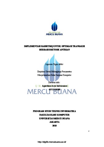 INDRASMORO, AGUSTINUS ARYO (2018) IMPLEMENTASI RABBITMQ UNTUK OPTIMASI TRANSAKSI BERBASIS METODE ANTRIAN. S1 thesis, Universitas Mercu Buana Jakarta.