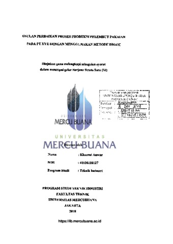 ANWAR, KHAERUL (2018) USULAN PERBAIKAN PROSES PRODUKSI PELEMBUT PAKAIAN PADA PT XYZ DENGAN MENGGUNAKAN METODE DMAIC. S1 thesis, Universitas Mercu Buana Jakarta.