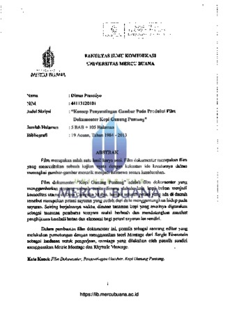 PRASETIYO, DIMAS (2018) KONSEP PENYUNTINGAN GAMBAR DALAM PRODUKSI FILM DOKUMENTER KOPI GUNUNG PUNTANG. S1 thesis, Universitas Mercu Buana Jakarta.