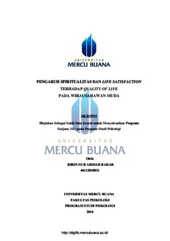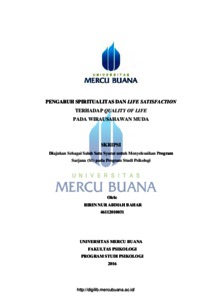 Bahar, Ririn Nur Abdilah (2016) PENGARUH SPIRITUALITAS DAN LIFE SATISFACTION TERHADAP QUALITY OF LIFE PADA WIRAUSAHAWAN MUDA. S1 thesis, Universitas Mercu Buana.