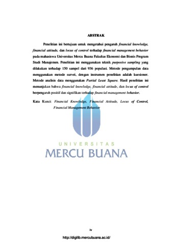 Penelitian ini bertujuan untuk mengetahui pengaruh financial knowledge, financial attitude, dan locus of control terhadap financial management behavior pada mahasiswa Universitas Mercu Buana Fakultas Ekonomi dan Bisnis Program Studi Manajemen. Penelitian ini menggunakan teknik purposive sampling yang dilakukan terhadap 150 sampel dari 936 populasi. Metode pengumpulan data menggunakan metode survei, dengan instrumen penelitian adalah kuesioner. Metode analisis data menggunakan Partial Least Square. Hasil penelitian ini menunjukan bahwa financial knowledge, financial attitude, dan locus of control berpengaruh positif dan signifikan terhadap financial management behavior. Kata Kunci: Financial Knowledge, Financial Attitude, Locus of Control, Financial Management Behavior This research aims to determine the effect of financial knowledge, financial attitude, and locus of control on the financial management behavior of students at the Mercu Buana Unversity facultas Economy and Business Program Management. This research used a purposive sampling technique carried out on 150 samples from 936 populations. The Methods of data collection using survey method, with the research instrument is a questionnaire. The data analysis method using Partial Least Square. The results showed that financial knowledge, financial attitude, and locus of control has a positive and significat effect of financial management behavior. Keywords: Financial Knowledge, Financial Attitude, Locus of Control, Financial Management Behavior