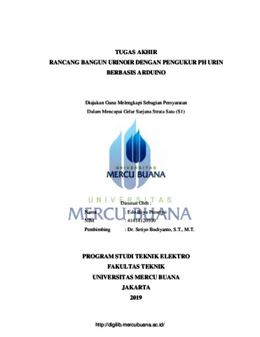 PRASETYO, EDO BAYU (2019) RANCANG BANGUN URINOIR DENGAN PENGUKUR PH URIN BERBASIS ARDUINO. S1 thesis, Universitas Mercu Buana.