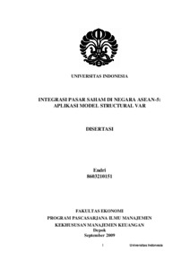 ENDRI, ENDRI (2009) INTEGRASI PASAR SAHAM DI NEGARA ASEAN-5: APLIKASI MODEL STRUCTURAL VAR. S3 thesis, Universitas Mercu Buana Jakarta.