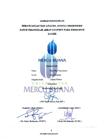 NURYANTORO, IBNU SINA (2020) PERANCANGAN DAN ANALISA ANTENA MIKROSTRIP PATCH TRIANGULAR ARRAY 4 ELEMEN PADA FREKUENSI 2.4 GHZ. S1 thesis, Universitas Mercu Buana Bekasi.
