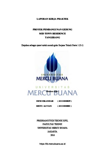ALVIAN, RISTU (2016) PROYEK PEMBANGUNAN GEDUNG MID TOWN RESIDENCE TANGERANG. S1 thesis, Universitas Mercu Buana.