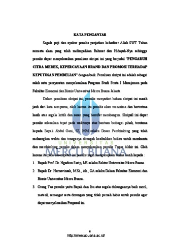 MUTSRIN, AFIRNIAR (2019) PENGARUH CITRA MEREK, KEPERCAYAAN MEREK DAN PROMOSI TERHADAP KEPUTUSAN PEMBELIAN (Studi Kasus Pada PT. Bukalapak). S1 thesis, Universitas Mercu Buana.