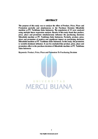The purpose of this study was to analyze the effect of Product, Price, Place and Promotion partially and simultaneous to the Purchase Decision Mitsubishi machine at PT. Tachibana Sales Indonesia. The population of 35 were analyzed using multiple linear regression analysis. Results of this study found that product, price, place and promotion simultaneously influence the purchasing decisions Mitsubishi machine at PT. Tachibana Sales Indonesia. Partially, product, price, place and promotion of positive and significant impact on purchasing decisions Mitsubishi machine at PT. Tachibana Sales Indonesia. In this study, the promotion is variable dominant influence. It can be concluded that product, price, place and promotion affect to the purchase decision of Mitsubishi machine at PT. Tachibana Sales Indonesia. ----Penelitian ini bertujuan untuk menguji dan menganalisis pengaruh produk, harga, tempat dan promosi secara parsial dan simultan terhadap keputusan pembelian mesin Mitsubishi di PT. Tachibana Sales Indonesia. Populasi sebanyak 35 dianalisis menggunakan analisis regresi linear berganda. Hasil dari penelitian ini didapat bahwa produk, harga, tempat, dan promosi secara simultan berpengaruh terhadap keputusan pembelian mesin Mitsubishi di PT. Tachibana Sales Indonesia. Secara parsial, produk, harga, tempat dan promosi berpengaruh positif dan signifikan terhadap keputusan pembelian mesin Mitsubishi di PT. Tachibana Sales Indonesia. Dalam penelitian ini, promosi merupakan variable yang dominan pengaruhnya. Dengan demikian dapat disimpulkan bahwa produk, harga, tempat dan promosi berpengaruh terhadap keputusan pembelian mesin Mitsubishi di PT. Tachibana Sales Indonesia.