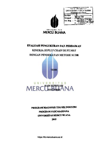 SUPRIYADI, HADI (2015) EVALUASI PENGUKURAN DAN PERBAIKAN KINERJA SUPPLY CHAIN DI PT. MST DENGAN PENDEKATAN METODE SCOR. S2 thesis, Universitas Mercu Buana Jakarta-Menteng.