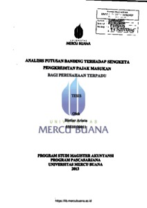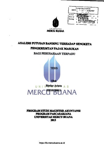 ARINTA, RIZTIAR (2013) ANALISIS PUTUSAN BANDING TERHADAP SENGKETA PENGKREDITAN PAJAK MASUKAN BAGI PERUSAHAAN TERPADU. S2 thesis, Universitas Mercu Buana Jakarta-Menteng.