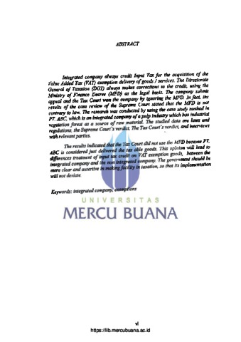 Perusahaan terpadu selalu mengkreditkan Pajak Masukan untuk perolehan barang/jasa yang atas penyerahannya dibebaskan dari pengenaan PPN. Fiskus melakukan koreksi atas pengkreditan tersebut dengan menggunakan Peraturan Menteri Keuangan (PMK) sebagai dasar hukumnya. Perusahaan mengajukan banding dan Pengadilan Pajak memenangkan perusahaan dengan mengabaikan PMK. Padahal hasil uji materi Mahkamah Agung menyatakan bahwa PMK tersebut tidak bertentangan dengan undang-undang. Penelitian dilakukan dengan metode studi kasus pada PT. ABC, yaitu sebuah perusahaan terpadu industri bubur kertas yang memiliki hutan tanaman industri sebagai sumber bahan bakunya. Data yang diteliti adalah peraturan perundang-undangan, putusan Mahkamah Agung, putusan Pengadilan Pajak, serta wawancara dengan pihak terkait. Hasil penelitian menunjukkan bahwa Pengadilan Pajak tidak menggunakan PMK karena berpendapat bahwa PT. ABC hanya melakukan penyerahan yang terutang pajak. Pendapat ini akan mengakibatkan perbedaan perlakuan terhadap kredit Pajak Masukan atas barang yang dibebaskan dari pengenaan PPN antara perusahaan terpadu dengan yang tidak terpadu. Pemerintah harus lebih jelas dan tegas dalam membuat kemudahan di bidang perpajakan, sehingga dalam penerapannya tidak menyimpang dari maksud dan tujuan diberikannya kemudahan tersebut.