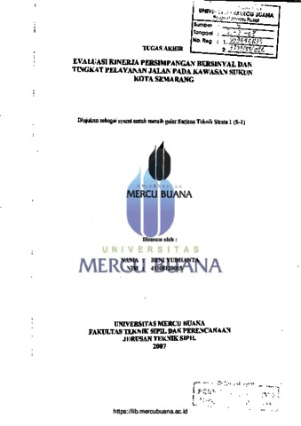 YUDHANTA, BENI (2007) EVALUASI KINERJA PERSIMPANGAN BERSINYAL DAN TINGKAT PELAYANAN JALAN PADA KAWASAN SUKUN KOTA SEMARANG. S1 thesis, Universitas Mercu Buana Jakarta.