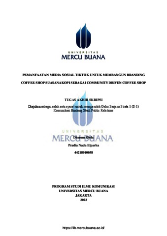 ELPARHA, PRADIA NADA (2022) PEMANFAATAN MEDIA SOSIAL TIKTOK UNTUK MEMBANGUN BRANDING COFFEE SHOP SUASANAKOPI SEBAGAI COMMUNITY DRIVEN COFFEE SHOP. S1 thesis, Universitas Mercu Buana.