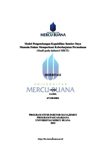 ZAIRIL, ZAIRIL (2022) MODEL PENGEMBANGAN KAPABILITAS SUMBER DAYA MANUSIA DALAM MEMPERKUAT KEBERLANJUTAN PERUSAHAAN (Studi pada industri MICE). S3 thesis, Universitas Mercu Buana Jakarta.