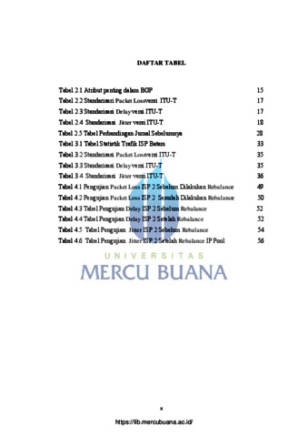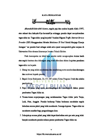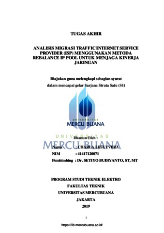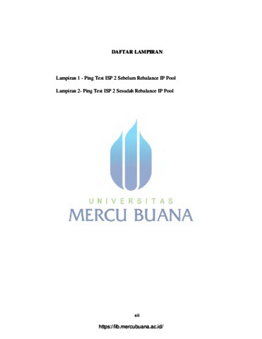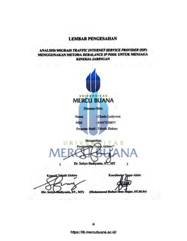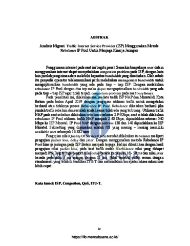 LESLYVERA, CHARLA (2019) ANALISIS MIGRASI TRAFFIC INTERNET SERVICE PROVIDER (ISP) MENGGUNAKAN METODA REBALANCE IP POOL UNTUK MENJAGA KINERJA JARINGAN. S1 thesis, Universitas Mercu Buana Jakarta.