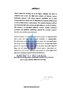 | Uncontrolled Keywords: | Reverse Logistic Improvement, Return Product,Return Good Policy,Stock On Shelf Anailabiliy, Informat |